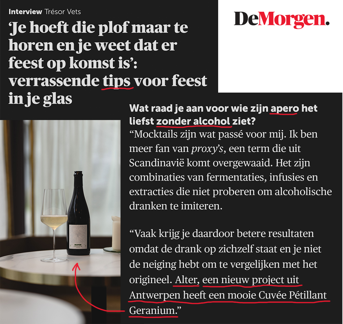 ALTER is an alternative for aperitif and wine moments, assembled from unripe grapes, fruit and herbs. Our cuvées follow the artisanal process of winemaking — from cultivation to blending — yet remain entirely alcohol-free.